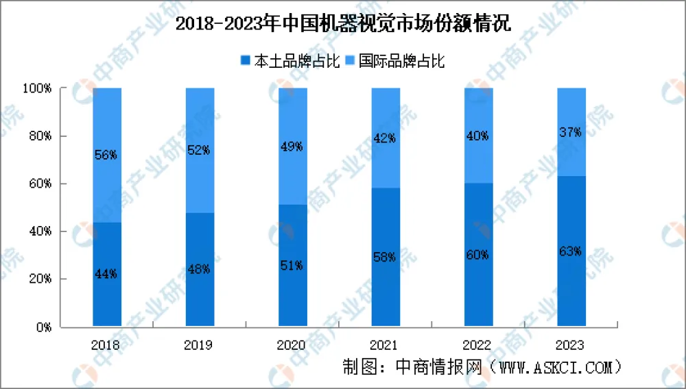 受益于光源系统、图像处理系统以及相机等软硬件领域的技术持续提升,机器视觉设备的成本端呈现逐年下降趋势。在同等价格甚至性价比更高的条件下,机器视觉设备可以提供更多更快的图像数据传输、更先进的软件算法,实现数字化、实时化和智能化的性能提升。性价比的提高加大了机器视觉设备的市场渗透率,同时,国内企业在地域性及客户服务上相较于境外企业有明显优势,随着国产机器视觉设备逐渐成熟,原先机器视觉行业较高的进口依存度为进口替代带来广阔的空间。
