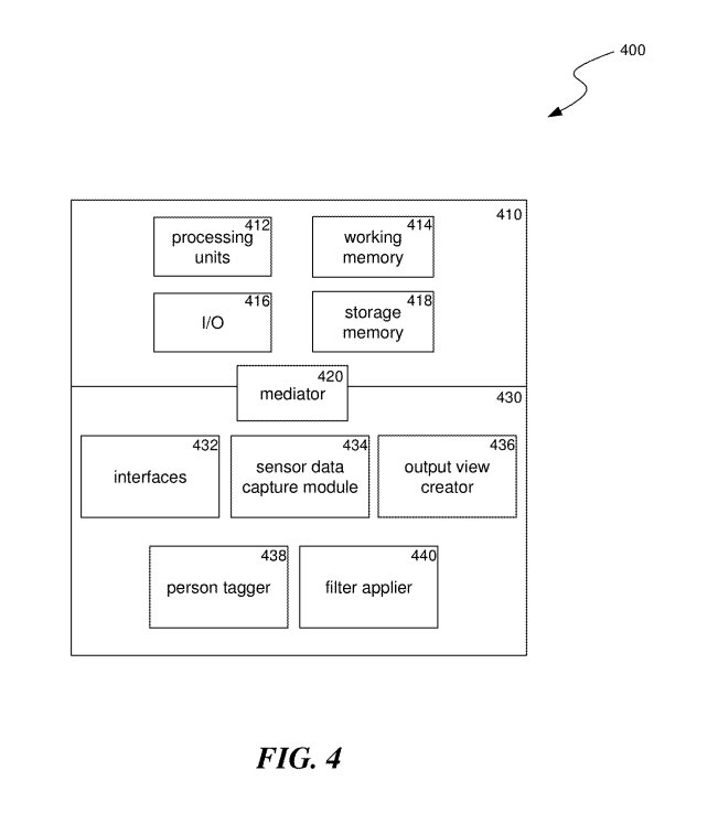 滤镜应用器440可以检查由人物标记器438标记的用户是否满足用于应用滤镜规则,并且如果满足,则可以应用模糊、叠加(例如文字、动画、化妆等)、变形人物的一部分、对人物应用阴影或高亮显示等滤镜应用。