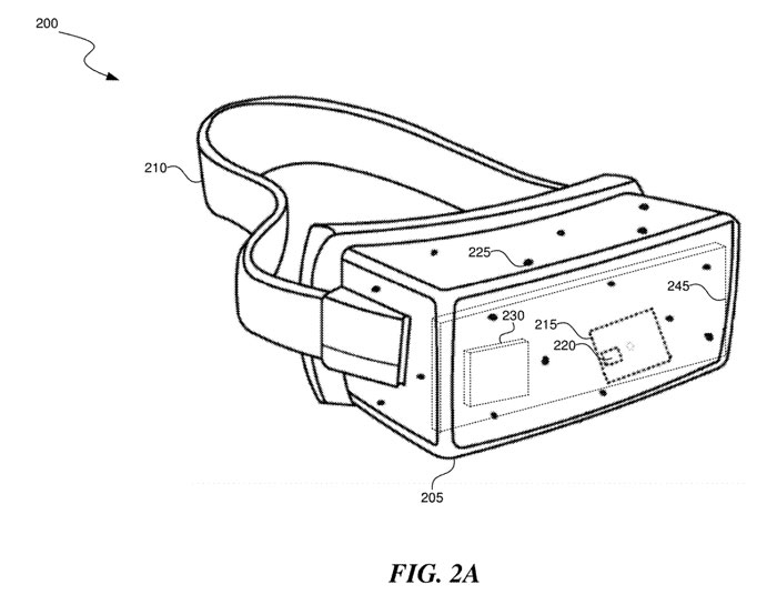 图2A是一个头显200的示意图。头显200可以包括一系列的传感器。例如,与头显200集成的一个或多个摄像头可用于捕获周遭区域的视频。