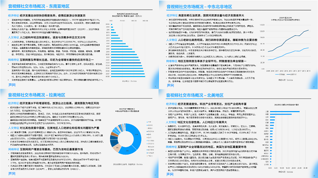 声网与品玩梳理了东南亚、中东北非、拉美等五大音视频社交出海的热门区域,除了对热门区域的经济、人文、网络特征等进行透彻分析,还基于声网音视频大数据,披露了以上地区的机型数据、网络占比,以及热门、新兴场景洞察。