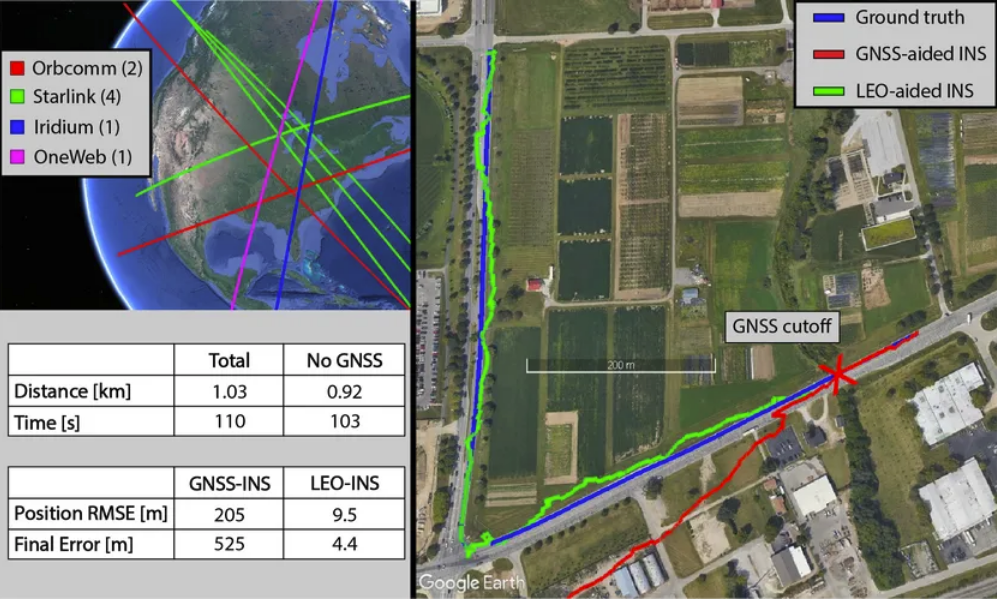 在最近的一项进展中,一个研究团队成功地使用一组近地轨道(low Earth orbit,LEO)卫星计算了它们在几米内的地面位置,在某些情况下优于当今的GPS惯性导航系统(GPS-inertial navigation system,INS)。
