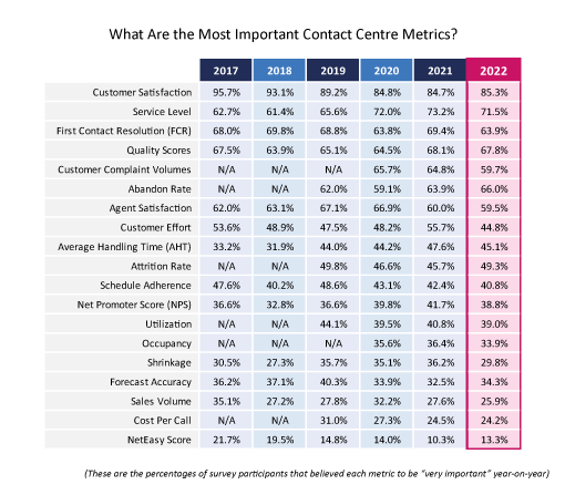 2022年的调查结果似乎表明联络中心正在改变他们认为最重要的指标。