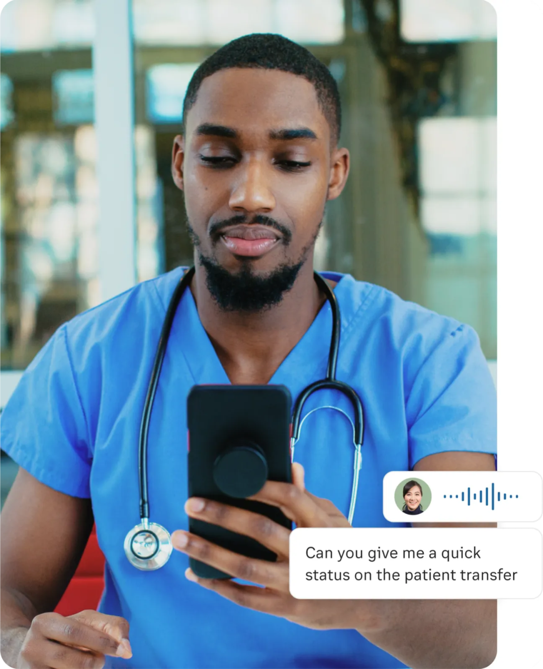 医护人员与医院工作人员之间对于患者状况的沟通至关重要,而零售店员每次手动向仓库请求更多库存则浪费了大量时间。他们都是至关重要的工作人员,他们确保医院持续运转,为食品杂货店和路边提货服务提供员工,并在我们最需要的时候在外勤岗位上保持着所有关键服务的运行。 全球大约有27亿名一线员工,是办公室员工数量的两倍以上。然而,他们在后疫情时代的视频和人工智能革命中被大量忽视,并且与办公室员工之间的连接极其有限。一线员工需要提供适当的工具来有效地完成工作。如果没有进行数字化投资,将会导致工作孤立,部门和地理上的鸿沟。 正因如此,我们开发了专为一线员工设计的RingCentral解决方案,这是一个下一代应用程序,具备强大的功能,包括按键对讲、AI驱动的视频、实时转录、降噪、文件共享等等,所有功能集成于一个应用中。 什么是针对一线员工的RingCentral解决方案? RingCentral的一线员工解决方案现在提供了新的按键对讲功能,为一线团队提供清晰和安全的语音通信,只需按下按钮即可,使员工或公司拥有的移动设备具备对讲机功能。 医疗保健、零售和制造等各行业的一线员工现在可以使用单一设备,通过WiFi或蜂窝网络连接,与组织的其他成员无缝连接和沟通。 更棒的是,它与基于人工智能的视频协作功能集成于一个应用中,这样就可以将智能手机转变为一线工具,包括移动摄像头共享、降噪功能、智能视频字幕、转录和翻译、图片共享等功能。 为什么这些必不可少的工人需要新一代的通信工具? 我们的新一线员工解决方案能够实现用户企业各部分之间的无缝通信,因为它允许用户: 三个重要行业如何使用针对一线员工的RingCentral? 让我们更仔细地看看针对一线员工的RingCentral在医疗保健、零售和制造等相关领域的好处。 医疗保健 零售业 制造业 针对一线工人的RingCentral解决方案的5个关键特征 1.保持警觉、无需动手操作,自动播放功能 在锁定或未锁定设备上启用自动播放功能,以便在工作期间倾听关键信息。即使在操作重型机械或作为医疗专业人员需要快速行动,也能够立即播放接收到的语音消息,提升公共安全。 2.与多模式设备无需特殊安装进行集成 利用先前的硬件投资,通过更少的设备和应用提高投资回报率和生产力。让员工快速上手,使用他们已经熟悉的设备。 3.同时收听多个频道 在工作期间选择一个特定的团队频道,并可以轻松地在频道之间切换,仅需点击一下。当工作完成时离开频道,这样就可以真正断开连接。与大团队的即时、免提沟通从未如此简单! 4.智能视频、转录和翻译 一线员工可以将语音通话快速转换为AI驱动的视频协作,引入AI驱动的“看到我所看到”的技术给现场团队。寻求第二意见或直观分享当前环境。员工还可以利用AI驱动的实时转录,或者如果周围环境噪音太大,AI降噪功能可以使听到更清晰的音频更加容易。 5.文件共享、团队消息等 连接一线员工和后勤办公室员工。针对一线员工的RingCentral解决方案允许一线员工和后勤办公室员工通过团队消息进行轻松聊天和文件共享,以实现更强大、更有效的协作。