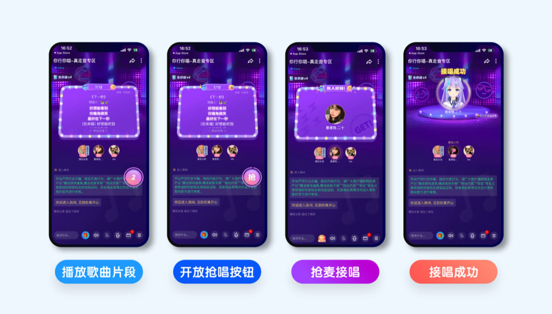 - 互动挑战:获得爆灯/礼物的用户可以唱完