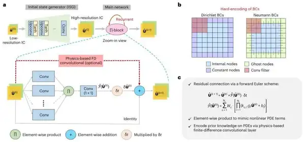 总的来说,由于先前知识不足和缺乏明确的PDE公式来描述系统变量的非线性过程,预测复杂时空动力学系统的演化在许多情况下都是一项具有挑战性的任务。传统的机器学习方法必须依赖大量的训练数据,存在解释性差、泛化能力弱和模型错误难以控制等问题。