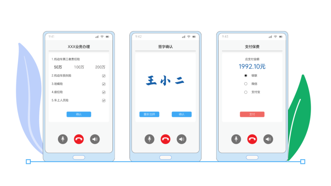 用户通过点击菜单按钮即可进入相应的子菜单,办理各种业务或者查询信息。通话过程中,双方通过发送图片、视频、HTML5等内容,以及通过点击、标记、签名等方式进行互动。