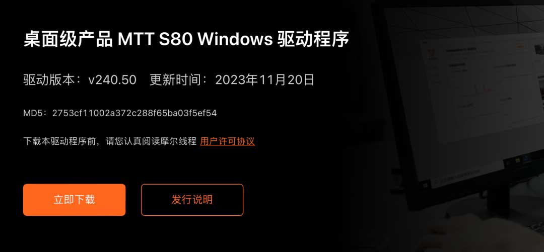 https://developer.mthreads.com/driver-info/MTT_S80/release-note/v240.50