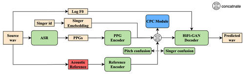 结合附加声学特征和CPC模块的歌唱转换系统框架