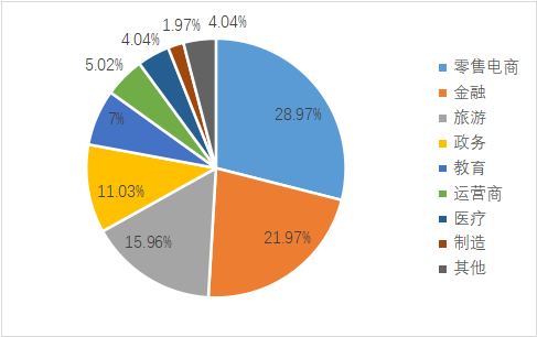 根据弗若斯特沙利文发布的相关数据,智能客服主要五类产品及其市场占比为:在线客服30%,语音客服30%,智能质检25%,数字人客服10%,辅助机器人5%。智能客服应用较广泛的前五个行业及其市场份额为:零售电商28.97%,金融业21.97%,旅游业15.96%,政务11.03%,教育7%。