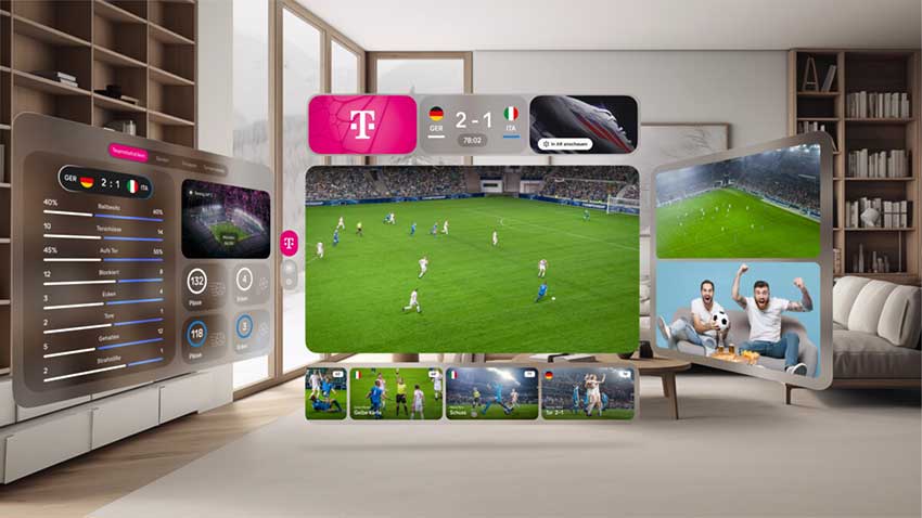 通过将 Magenta 的直播流整合到 XR 体验中,德国电信和 Accedo 将为球迷带来不再受限于电视屏幕物理限制的观看体验。通过在球迷周围的空间显示比赛,该应用将融合球迷的物理世界和虚拟世界,同时还引入了一个新的互动层,球迷可以访问球队和球员统计数据等补充信息,并从不同角度观看回放。