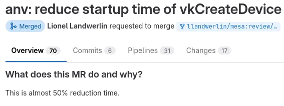 英特尔公司的 Lionel Landwerlin 在过去一个月里将其正在审核中的补丁系列添加到了 Mesa 24.2 中。它将 vkCreateDevice()(使用 Vulkan API 创建新设备实例的调用)的启动时间缩短了约 50%。