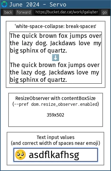 Servo 的其他一些变化包括表情符号处理改进、更好的 Web 字体性能、针对 Rust 1.78 进行构建以及许多其他低级改进。
