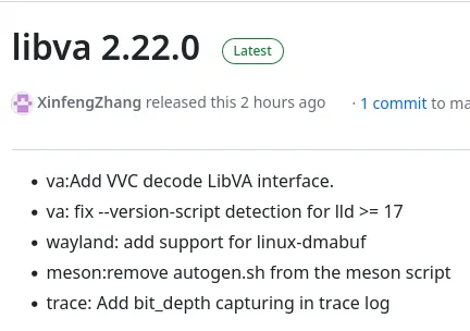 libva 2.22 的另一个显著新增功能是为在 Wayland 上运行时使用的 Linux DMA-BUF 协议添加支持。