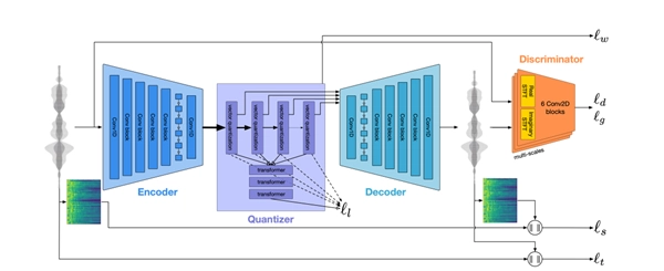 据介绍,“EnCodec”AI训练模型涵盖三个部分,分别为编码器、量化器和解码器。