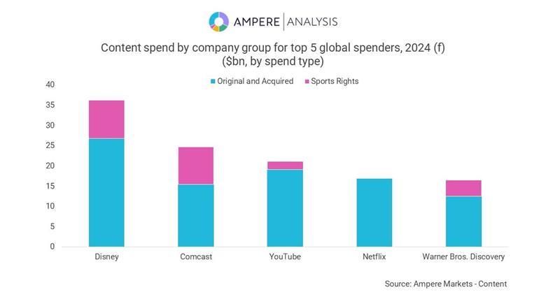 Ampere Analysis 高级分析师 Jaanika Juntson 表示:“尽管其他平台上的再授权机会有限,但 YouTube 仍通过与内容创作者分享收入的方式大力投资内容,并已在全球非体育内容支出中占据第二位。YouTube 独特的商业模式使该平台在媒体市场中脱颖而出,同时它在娱乐领域也发挥着关键作用。”