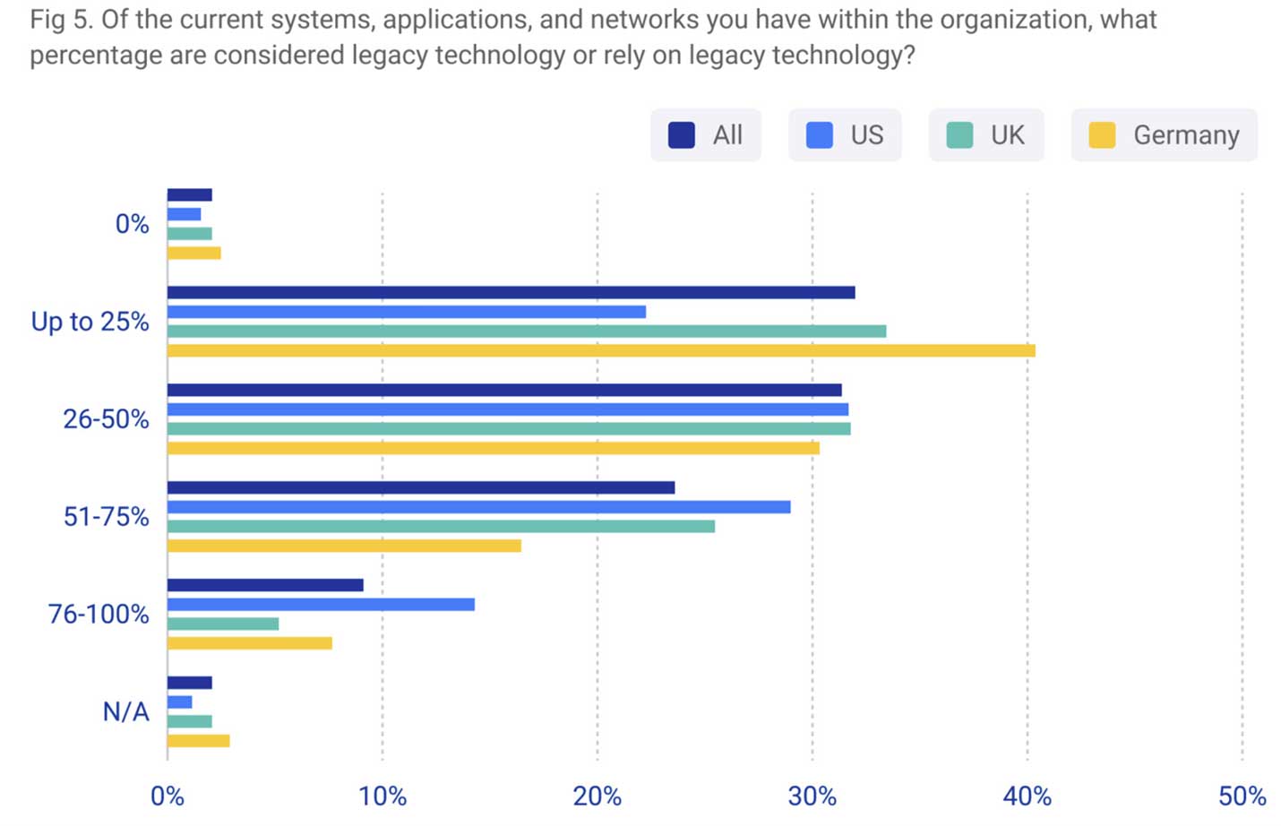 升级传统技术和老式软件语言的一个重要原因是,它们不再能以当前所需的速度工作。SnapLogic 在报告中引用了另一个原因: 57% 的受访企业计划更新其组织内最多 50% 的传统技术,以使用 Gen AI 技术。