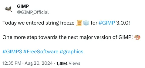 GIMP 项目今天在 X/Twitter 上宣布,他们已经为这个备受期待的版本进入了字符串冻结阶段。