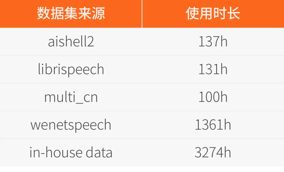 该模型的训练数据MT5K(MT 5000h)由部分开源数据和内部数据构成,内部数据的语音识别标签均是由第三方云服务得到的伪标签。语音识别的伪标签经过一个文本翻译模型后,得到语音翻译的伪标签。我们没有对这些伪标签数据做任何的人工筛选。具体数据来源和对应的规模如下: