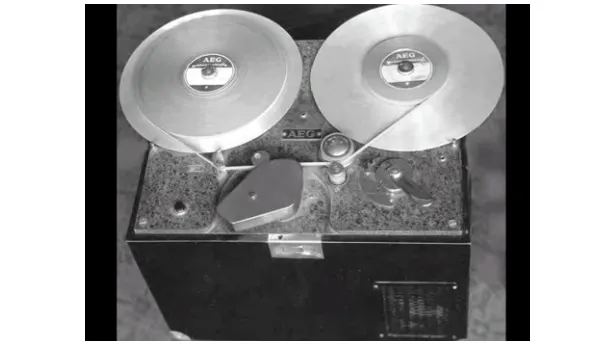 德国电子品牌 AEG(成立于 1883 年)在 1935 年的柏林展会上展出了第一台实用录音机。这款名为 Magnetophon K1 的设备是一款卷带式磁带录音机,以 Fritz Pfleumer 于 1928 年发明并获得专利的磁带(或 “sound paper machine”)为基础。这项技术授权给了 AEG 公司,后者随后开发出一种更稳定的醋酸磁带,K1 由此诞生。与钢带设计相比,K1 的成本效益更高,音质也更出色。