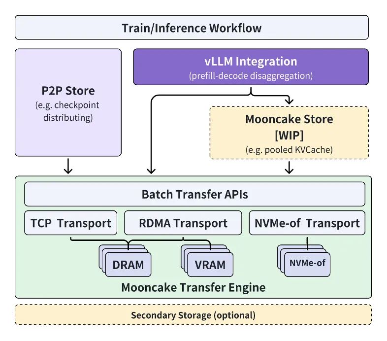 2024 年 6 月,月之暗面 Kimi 和清华大学 MADSys 实验室联合发布了 Kimi 底层的 Mooncake 推理系统设计方案。该系统基于以 KVCache 为中心的 PD 分离和以存换算架构,大幅度提升了推理吞吐,受到业界广泛关注。
