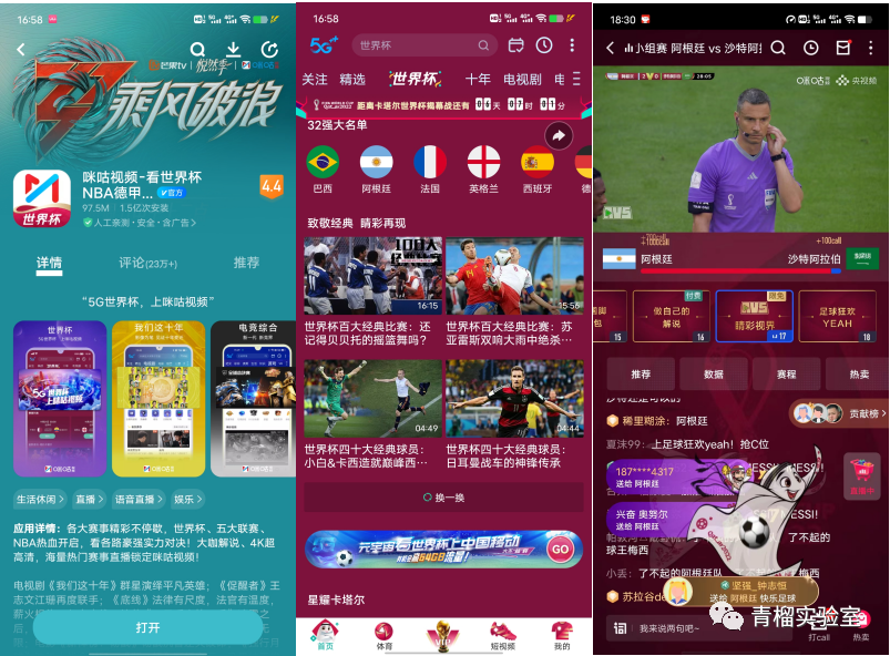 2022年11月14日,中国移动咪咕公司首发 AVS3移动端规模化商用版本咪咕视频6.0.7.00,该版本下设的“致敬经典 睛彩再现”专区、以及“菁彩视听”双Vivid直播视角(Audio Vivid & HDR Vivid),通过国家自主的AVS3、Audio Vivid 编解码标准为用户呈现世界杯百大经典大赛的精彩画面及2022年的卡塔尔世界杯多场“睛彩和菁彩”的视觉+听觉直播实况盛宴。
