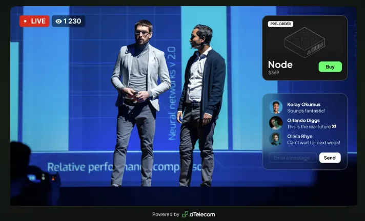 dTelecom.org 上的直播功能旨在彻底改变去中心化通信,让用户能够举办小组讨论、研讨会、问答环节、游戏直播等。dTelecom 能够支持多达 100,000 名参与者,延迟低于 500 毫秒,为实时互动提供了可扩展且经济高效的解决方案。