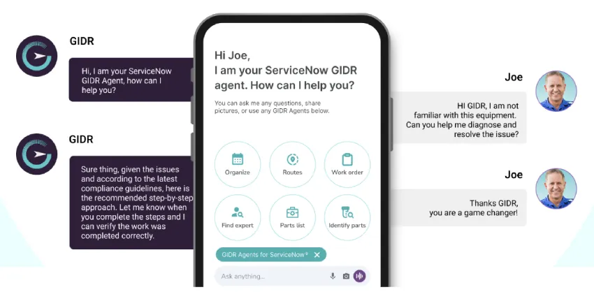 GIDR 现场服务产品包括预配置的 AI 语音代理,无缝集成和扩展 ServiceNow 自己的 AI 代理,具有指导和合规功能。