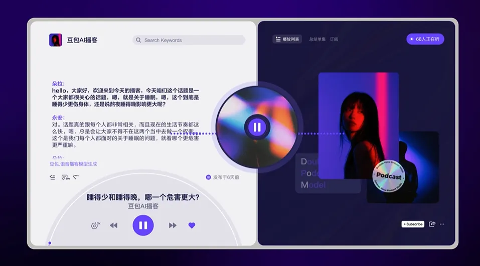 时事热点跟随:在信息更新换代极快的当下,紧跟时事热点是播客保持吸引力的关键。豆包·语音播客模型具备深度搜索功能,用户只需输入热点话题,5秒即可听到利用最新信息生成的播客音频。