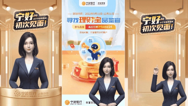 作为数字经济时代“金融+科技”的创新实践,基于AI数字人技术的“数字员工”如今已在银行业广泛应用。宁波银行上海分行行长徐雪松表示,“‘小宁’体现了宁波银行以科技为业务赋能,用专业创造价值的核心理念,同时也是银行数字化转型的一次探索。希望通过与商汤科技的合作,促进银行业与AI领域的深度融合,实现银企共赢,为客户带来更加智能高效的服务体验。”