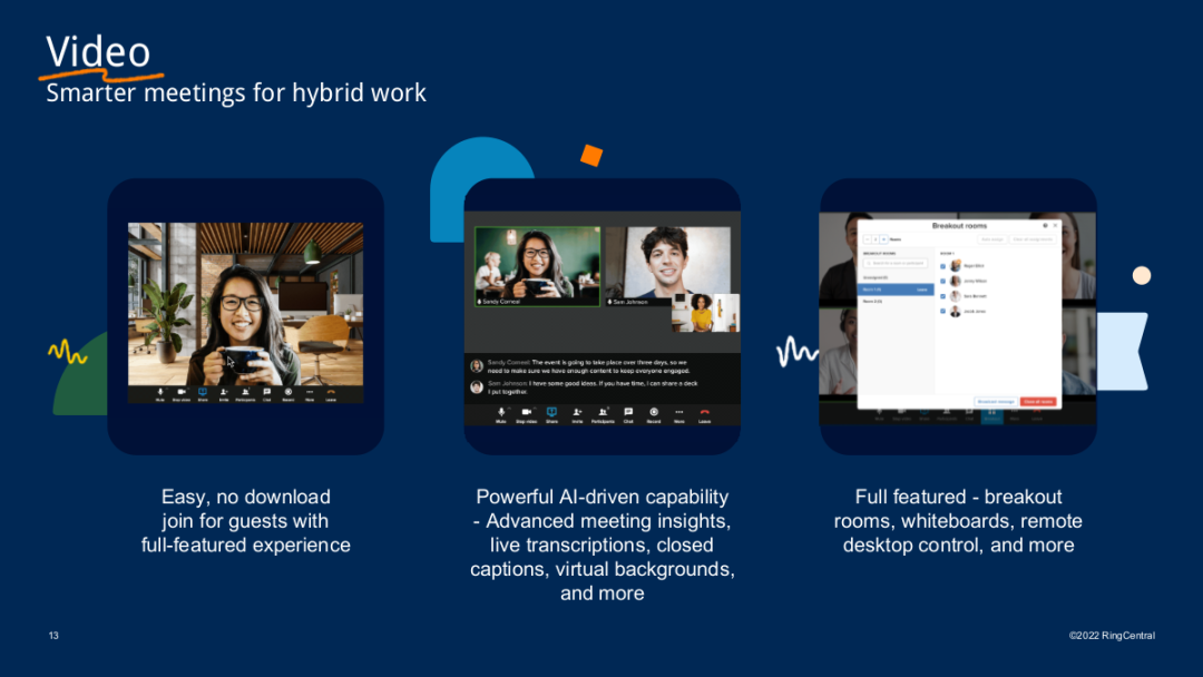 同时,RingCentral为其UCaaS产品添加了多项增强功能,为商业决策提供信息,增强了客户体验。这包括今年推出的RingCentral Webinar™,基于人工智能的会议洞察力和总结、白板、实时转录、面向业务线的下一代分析、以及AI代理辅助。