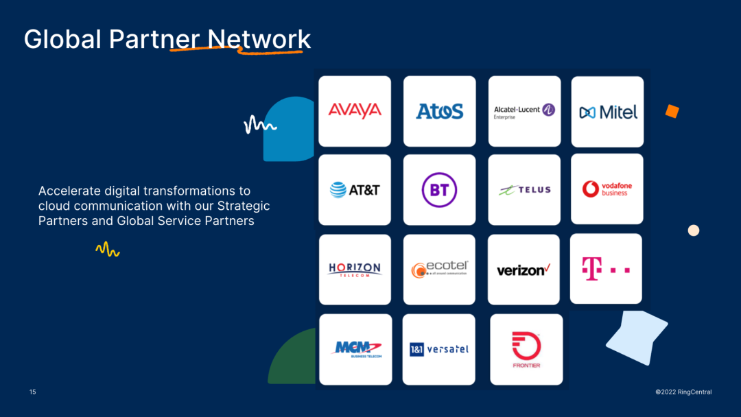 目前,RingCentral与一些世界领先的供应商合作例如 Avaya、Mitel等,帮助客户加速数字化转型。此外,RingCentral与一些世界领先的运营商合作,如美国的 AT&T、英国电信、Telus和 Vodafone等建立了长期合作关系,为客户提供云通信解决方案。