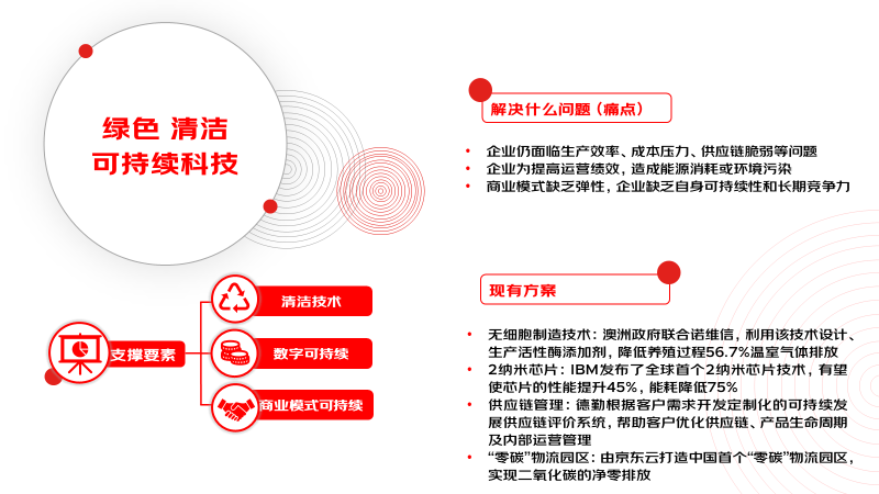 绿色、清洁、可持续科技旨在从清洁技术、人工智能和商业模式角度出发,满足对环境、可持续发展和治理目标的需求。