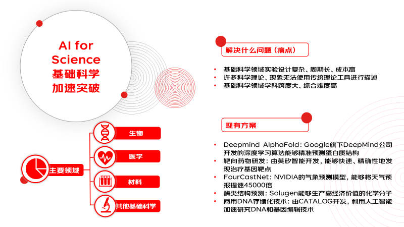 - AI for Science扩展AIGC技术应用领域,增强人工智能在合成生物学、分子结构学、纳米材料领域的预测能力